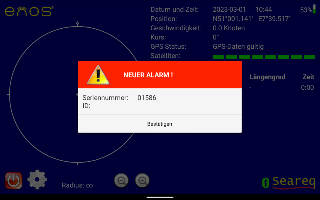 Nach nur 5 Sekunden erhält der ENOS-Empfänger den 1. Alarm: