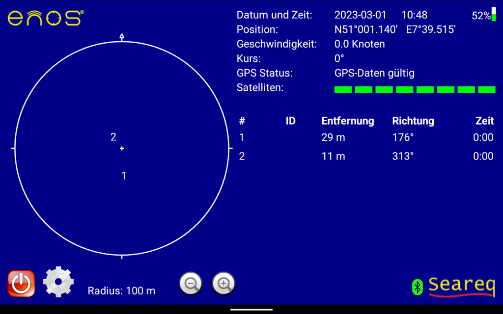 Anzeige der GPS-Koordinaten von den Tauchern (blau)